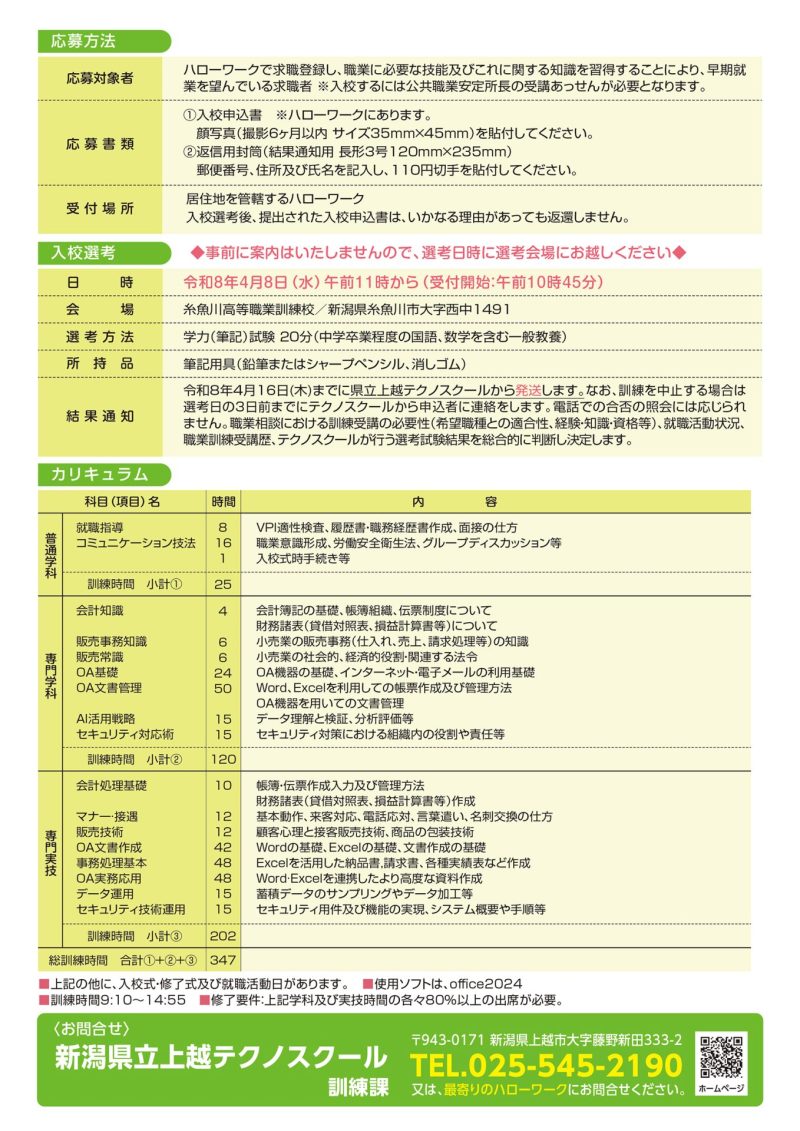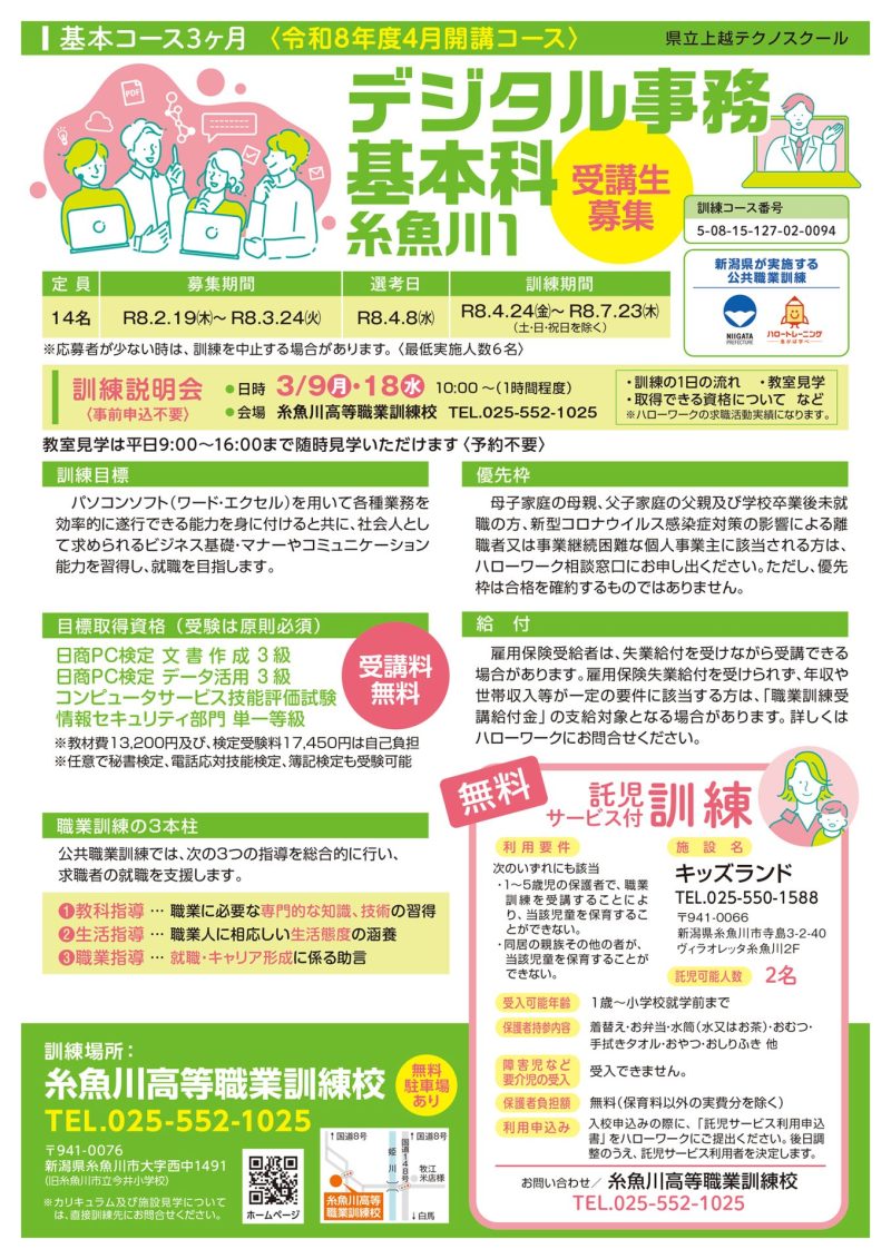 ≪令和8年度 デジタル事務基本科1期 訓練生募集≫